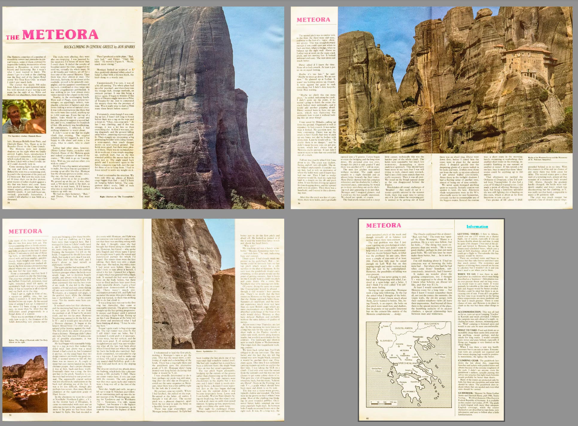 In 1986 I found myself on an international rock-climbing meet in the spectacular location of Meteora in Greece. I'd never climbed outside the UK before, and to heighten my starry-eyed excitement I wound up doing my very first climb there with a famous climber called Dietrich Hasse.